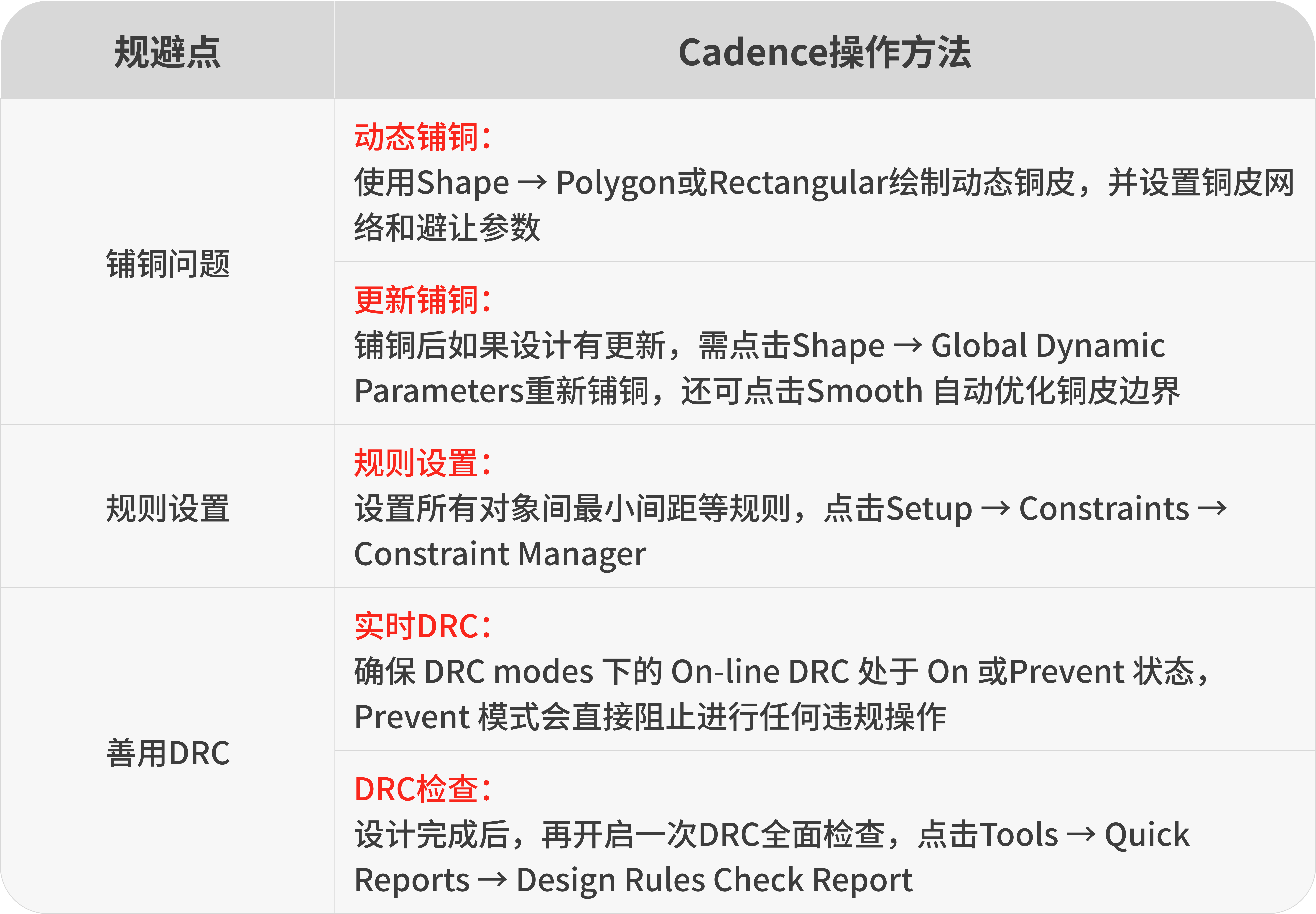 预防PCB设计中的短路问题,不能仅依赖最后一刻的DRC检查,而应建立一个贯穿始终的系统工程,将规则驱动、习惯约束与人工验证三者结合,尽可能的规避短路风险。