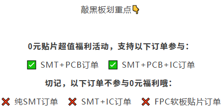 2、本活动仅支持普通钢网,不支持钢网随货发、程序烧录、功能测试、组装和三防漆;