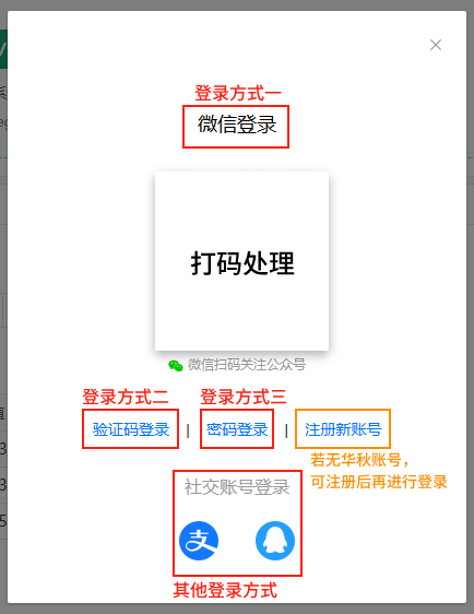 支持微信快捷登录、手机验证码登录、账号密码登录等多种方式。