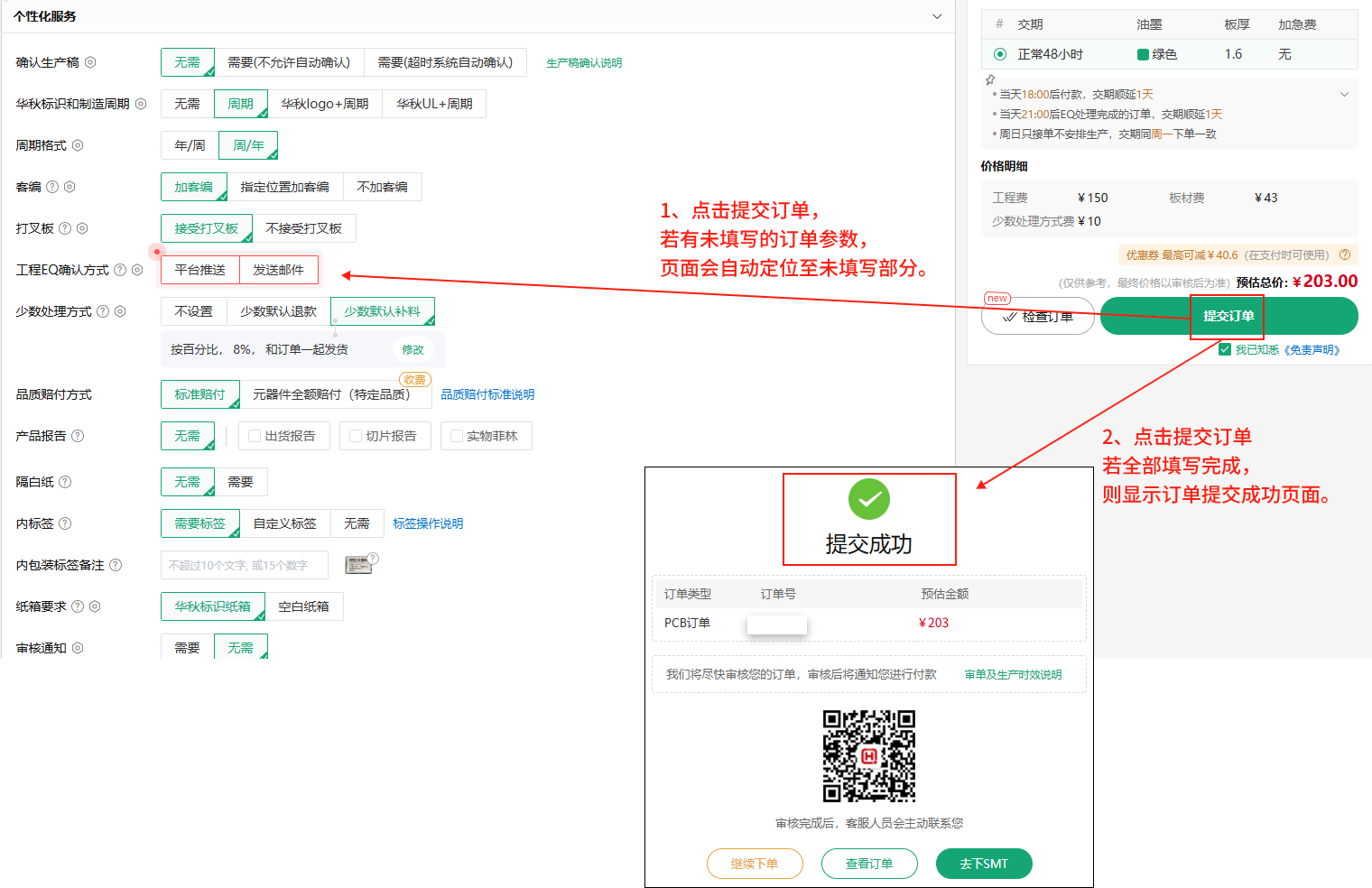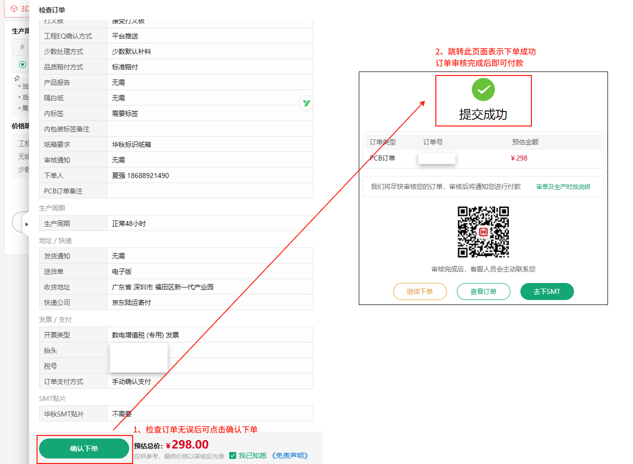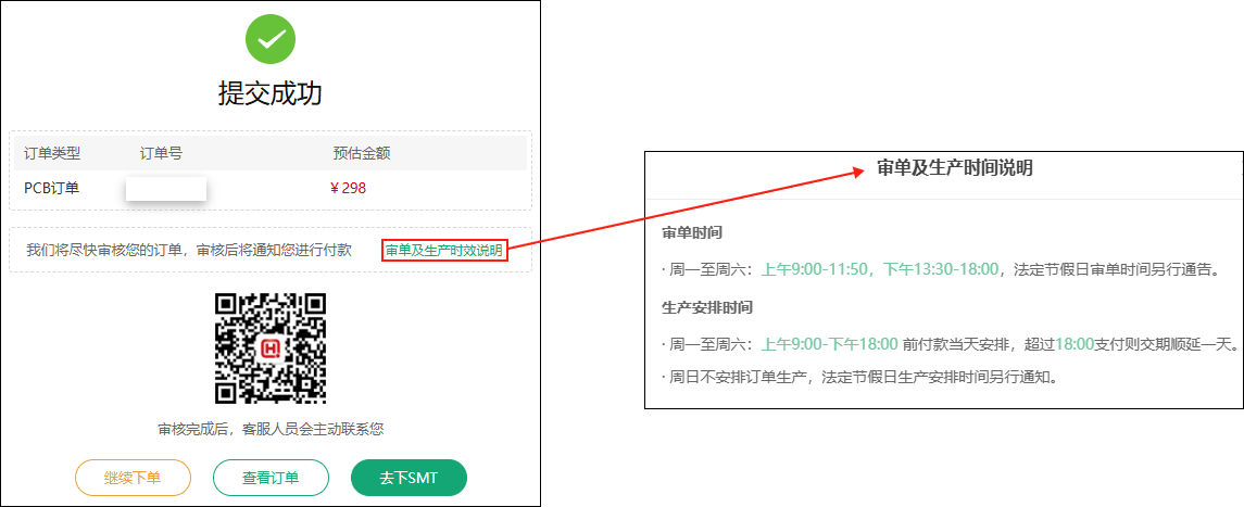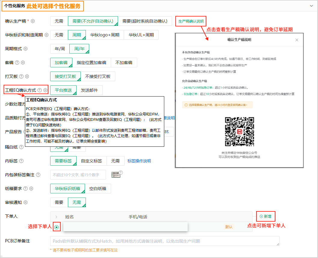 1)请注意确认生产稿的方式,推荐绑定华秋PCB公众号及时获取相关推送信息,以免订单延期;