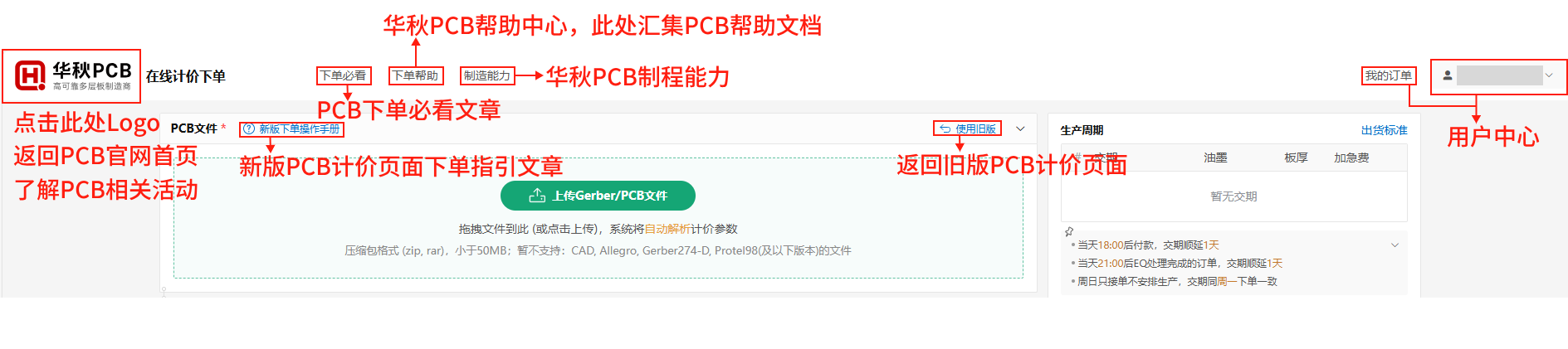点击【华秋PCB Logo】,一键返回官网首页,便捷切换各类服务板块。