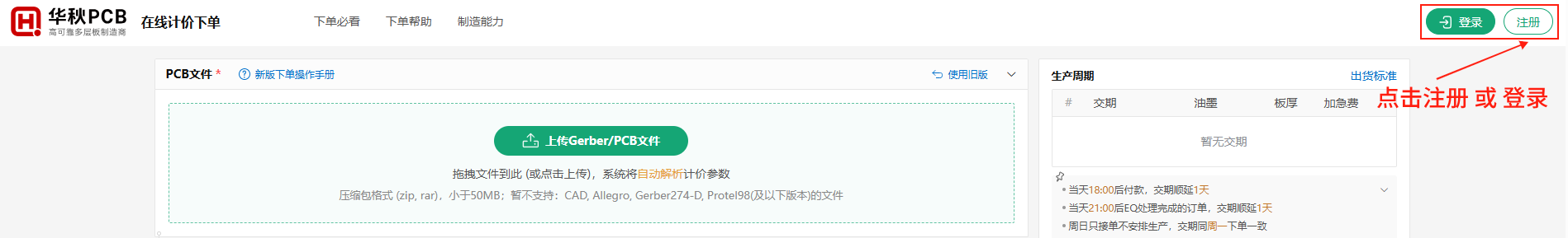 凡是华秋PCB、华秋商城、华秋SMT、电子发烧友、华秋DFM各站点注册的华秋账号,均可在华秋PCB下单页面登录。如若还无华秋账号,可点击注册新账号。