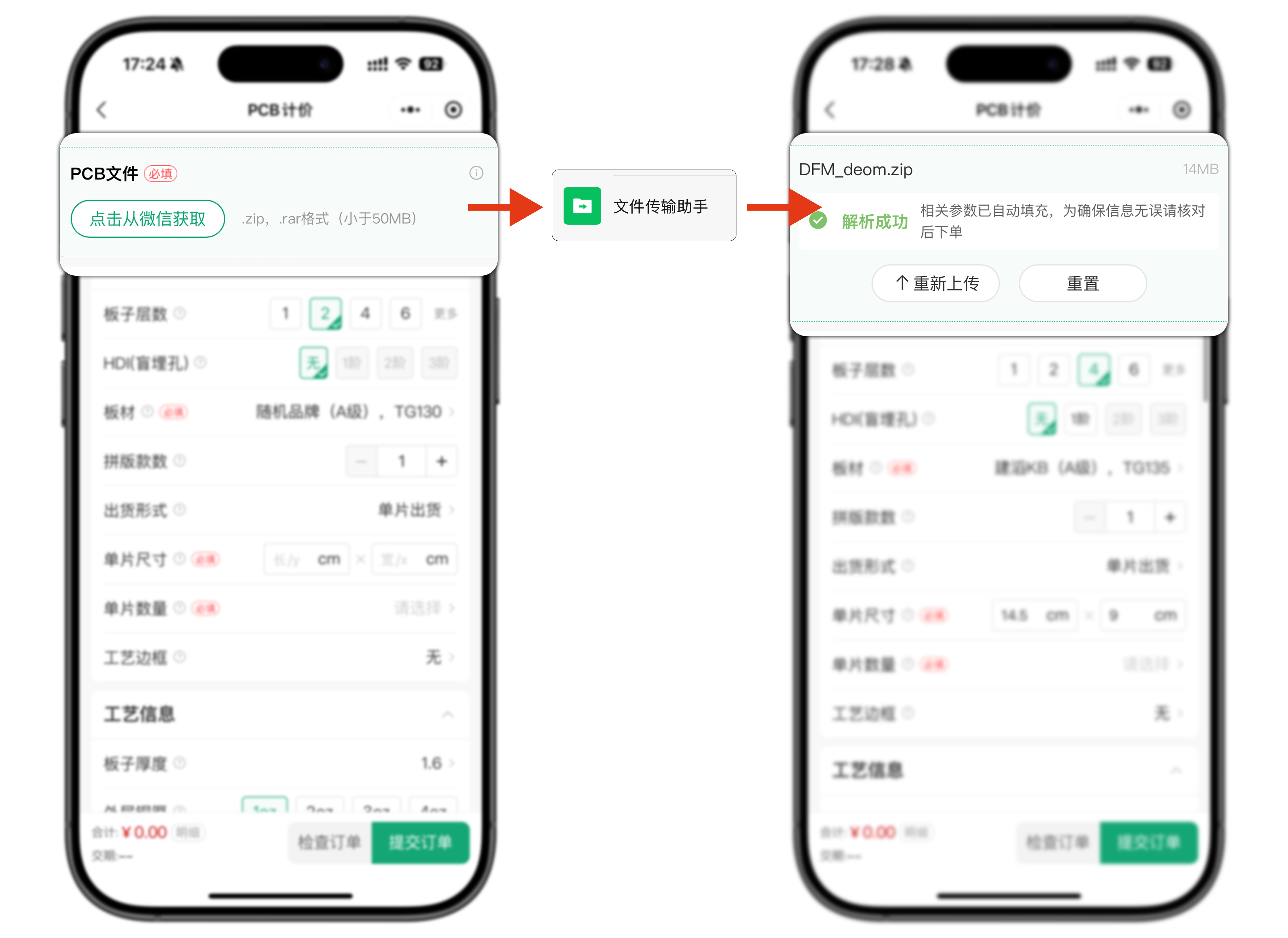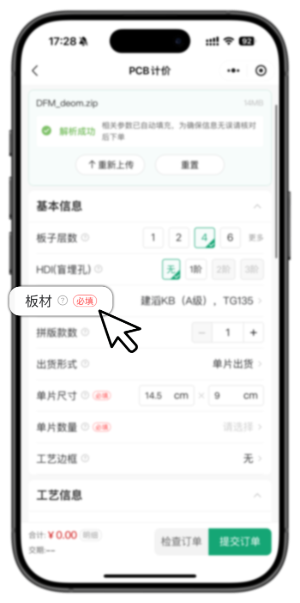 另外,系统还能自动解析PCB文件,智能地帮您填写关键参数!