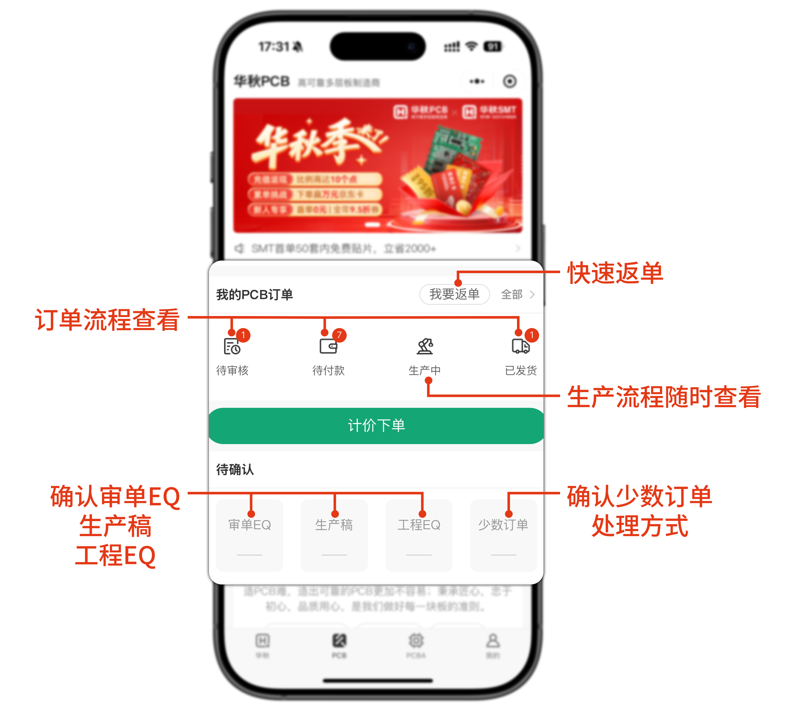 华秋PCB小程序全新版本正式亮相,一部手机就能随时随地轻松下单!